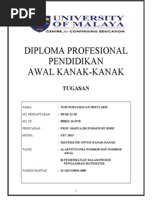 Sebagai negara kepulauan yang luas dan mempunyai masyarakat yang majmuk 60 KESIMPULAN meningkatkan pertumbuhan dan perkembangan kanak-kanak. Walau bagaimanapun jika konsep diperkenalkan pada usia awal maka terdapat pemahaman yang lebih baik. Namun pastikan sebelum mulakan aktiviti dan permainan yang dicadangkan anak anda telah menguasai konsep pra nombor seperti pengelasan padanan seriasi dan corak.