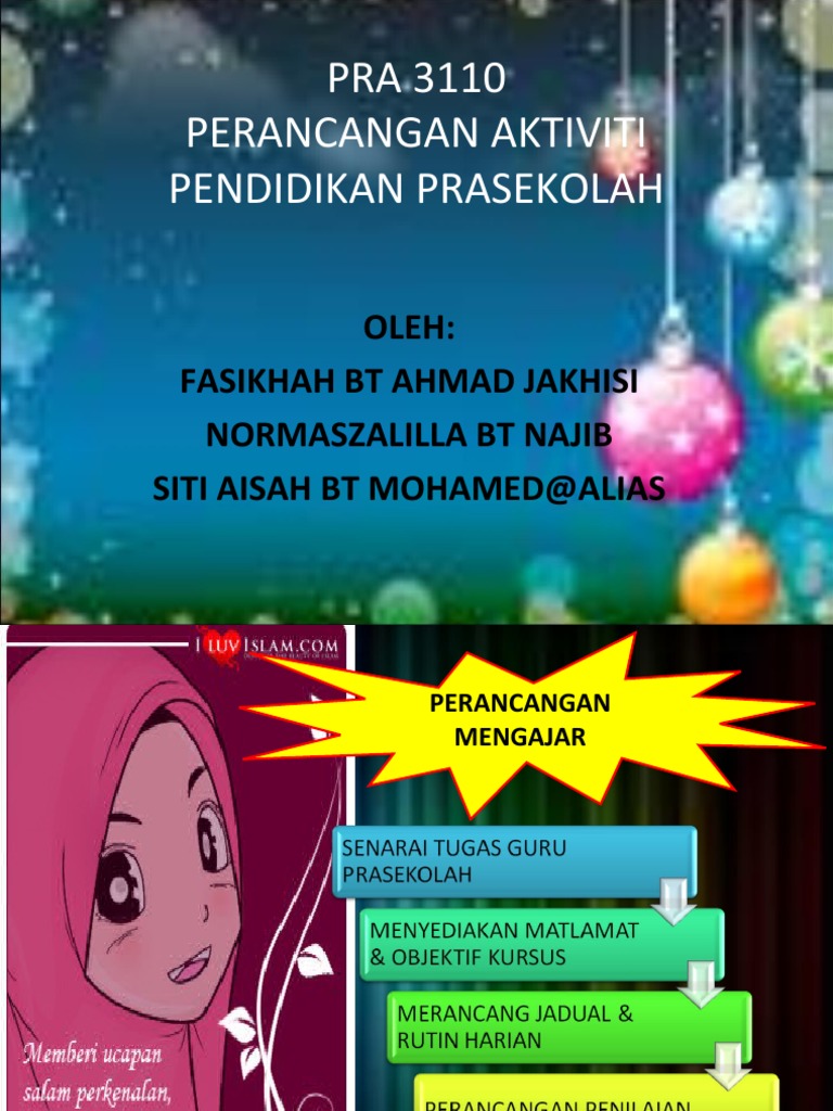 PERANCANGAN AKTIVITI PENDIDIKAN PRASEKOLAH SENARAI TUGAS GURU PRASEKOLAH MENYEDIAKAN MATLAMAT OBJEKTIF KURSUS MERANCANG JADUAL RUTIN HARIAN PERANCANGAN PENILAIAN REFLEKSI GURU 3. Guru menunjukkan kuih yang telah dibeli di kedai kepada murid 2. Oleh kerana itu peralatan mengajar tidak mencukupi seperti bahan bantu mengajar papan putih buku latihan dan sebagai nya.