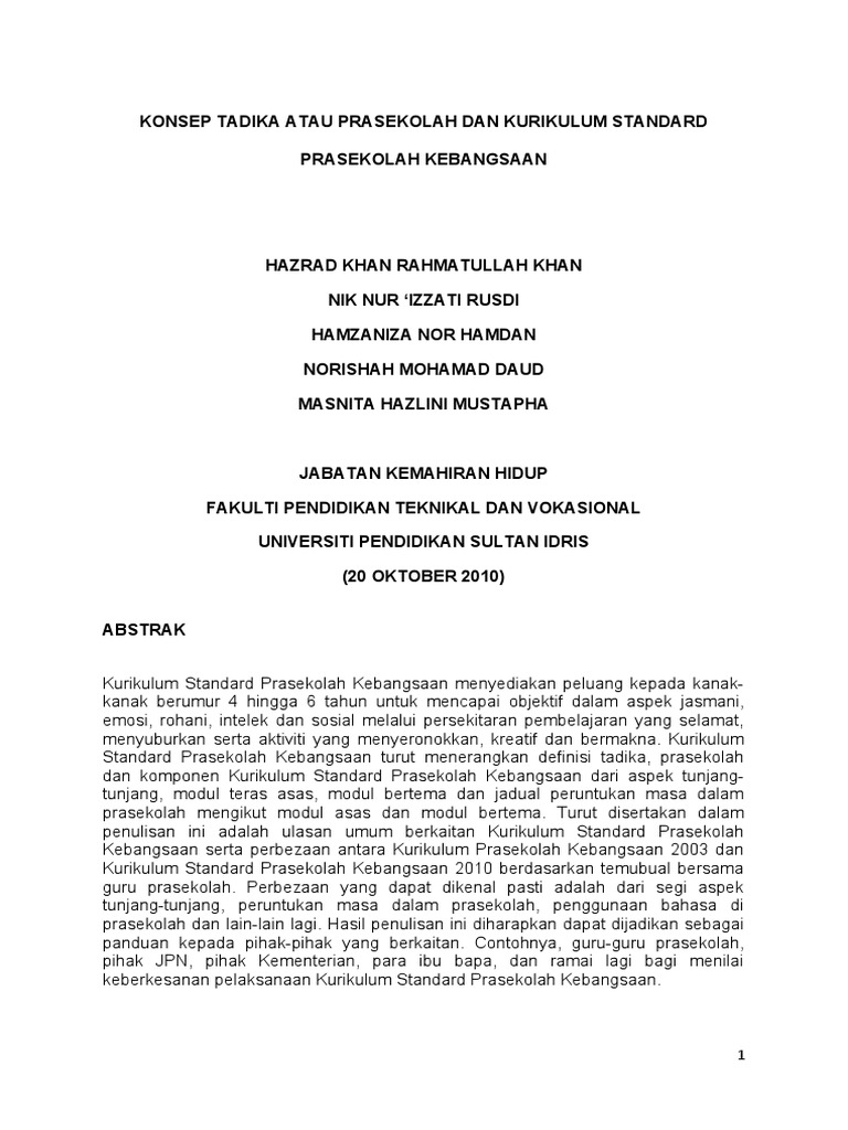 Doc Konsep Tadika Atau Prasekolah Dan Kurikulum Standard Prasekolah Kebangsaan Ikmal Firdaus Academia Edu