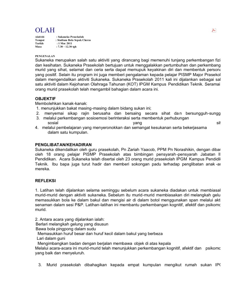Kertas Kerja Sukaneka Prasekolah Sekolah Kebangsaan Sungai Pelong