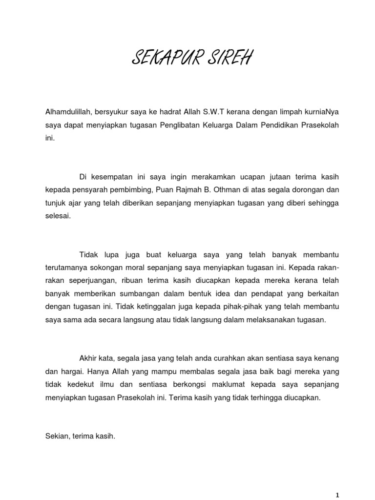 Masih terdapat segelintir ibu bapa yang tidak mengetahui bahawa pendidikan awal kanak-. Untuk menyokong guru dengan membantu anak-anak mengasah kebolehan dan kemahiran yang ada supaya mereka lebih bersinar. Rutin dan Peraturan di Tadika Bab 14 Isu dan Cabaran Isu Penglibatan Ibu Bapa Isu Kerap Bertukar Guru Isu Premis Isu Mementingkan Kehendak Ibu Bapa Lampiran Lampiran 1Akta Pendidikan 1996 Lampiran 2Peraturan-peraturan Pendidikan Kurikulum Prasekolah Kebangsaan Lampiran 3Contoh Kertas Kerja Menubuhkan Tadika Lampiran 4Contoh Rekod.