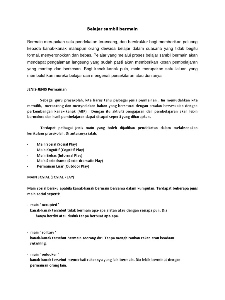 Pdf Faedah Bermain Dalam Perkembangan Kanak Kanak Prasekolah 4 6 Tahun