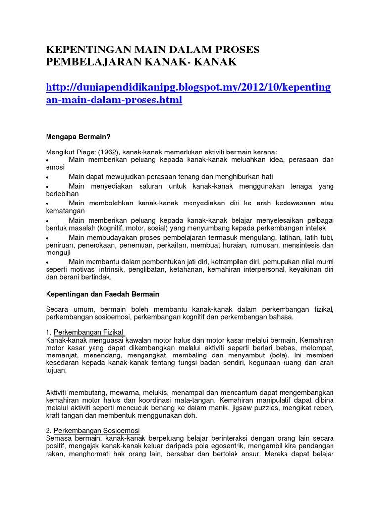 Link : Perkembangan Kanak-kanak Tadika Belajar Aktiviti Pembelajaran