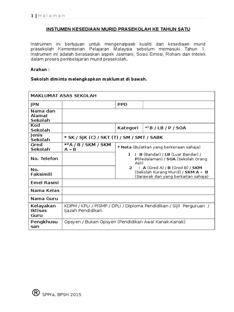 Instrumen Kesediaan Murid Prasekolah Ke Tahun Satu Terkini